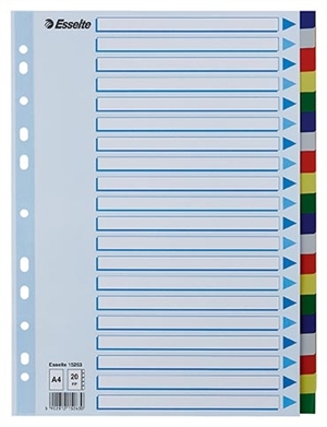 Register i karton med Mylar faner A4. Holdbart register i klare farvekombinationer. Forblad har store felter til indholdsbeskrivelse. Stærke holdbare faner med Mylar plastforstærkning. Plastforstærket hulstribe på forblade. 20 farvede faner printet 1-20 for nem sortering. 11 universalhuller. A4 format. Stærk 160 g karton.