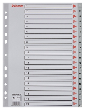 Leitz Register printbar PP A4+ 1-20 hvid/sort