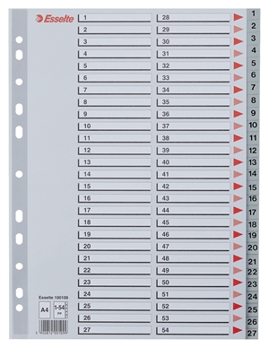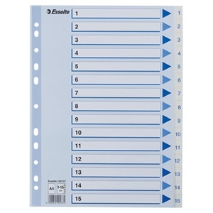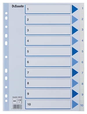 Kraftig PP-folie A4 med pile-design. Indhold 1-10. Forstærket forblad. Hvert sæt leveres i PP pose. Front ark 130 g stærk, hvid karton med plast-forstærkede huller