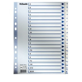 Register i hvide farver. Forblad med store skriveområder for indhold.- A4+ format giver hurtig adgang, også når der arkiveres med lommer- Plastforstærket hullet stribe på forblad- A-Å faner printet- 11 universalhuller- A4+ format- 0,12 mm PP