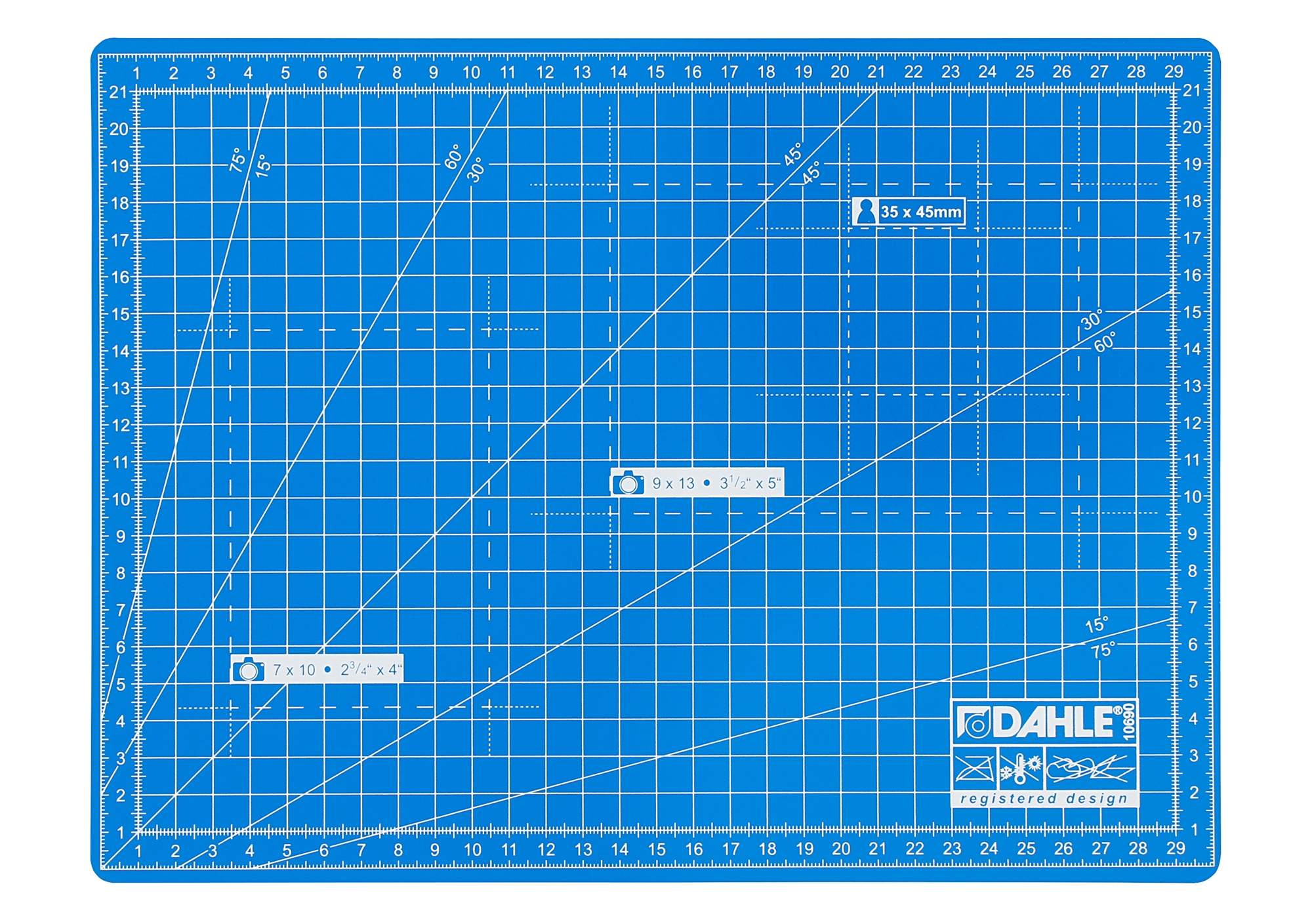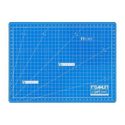 • Her er Dahle's trelags robuste skæremåtte. Skæremåtten har en selvhelende overfalde, og har tydelige førelinjer for at du kan opnå optimal placering af det materiale der skal skæres.