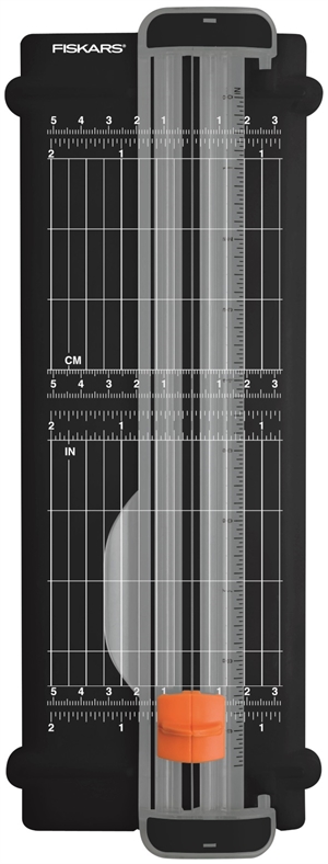 Skärmaskin från Fiskars med platta i 100 % returplast, klarar upp till 7 ark. Finns också i 22 cm (A5/A4L).