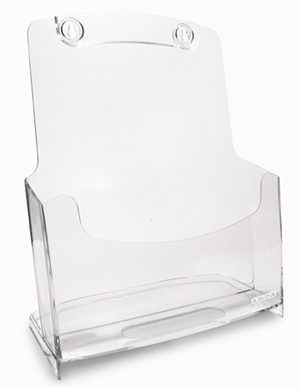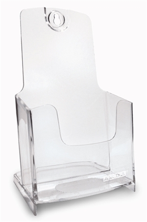 Brochureholder fremstillet af klar polystyren til pjecer, flyers mm. Mål: H 197mm B:165mm D: 85mm, mål indvendigt B:156mm D: 43mm