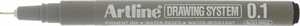 Tegnepen med 0,1 mm metalinkapslet spids. Pennen er vandfast efter den har tørret og blejes ikke. Indeholder vandbaseret blæk uden Xylen.