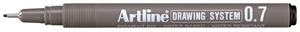 Tegnepen med 0,7 mm metalindkapslet plastspids. Pennen er vandfast efter at have tørret og bleges ikke. Indeholder vandbaseret blæk uden Xylen.