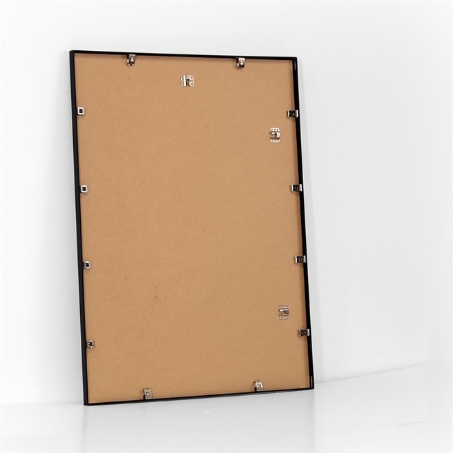 • Vores sorte aluminiumsrammer kombinerer klassisk elegance med et minimalistisk design, perfekt til mindre kunstværker, fotografier og dokumenter. Den slanke sorte aluminiumsprofil fremhæver motivet uden at stjæle opmærksomheden og giver dine billeder en tidløs præsentation.