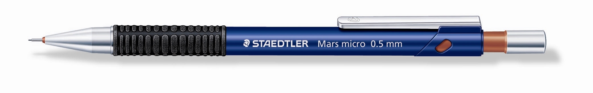 • Mars Micro 775 05 0.5 mm stift blyant. Stiftblyant til skrivning og tegning. Skridsikker gummi greb. Clips og trykknap i metal. Lang metalspids, ideel til brug med linealer og skabeloner. PVC og latex-fri viskelæder. Nemt at genopfylde med Mars micro carbon Stift (250 05 mm. stifter). Stregbredde 0,5mm. 775 06