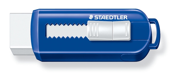 Staedtler Viskelæder PVC frit m/skub funktion blå/hvid