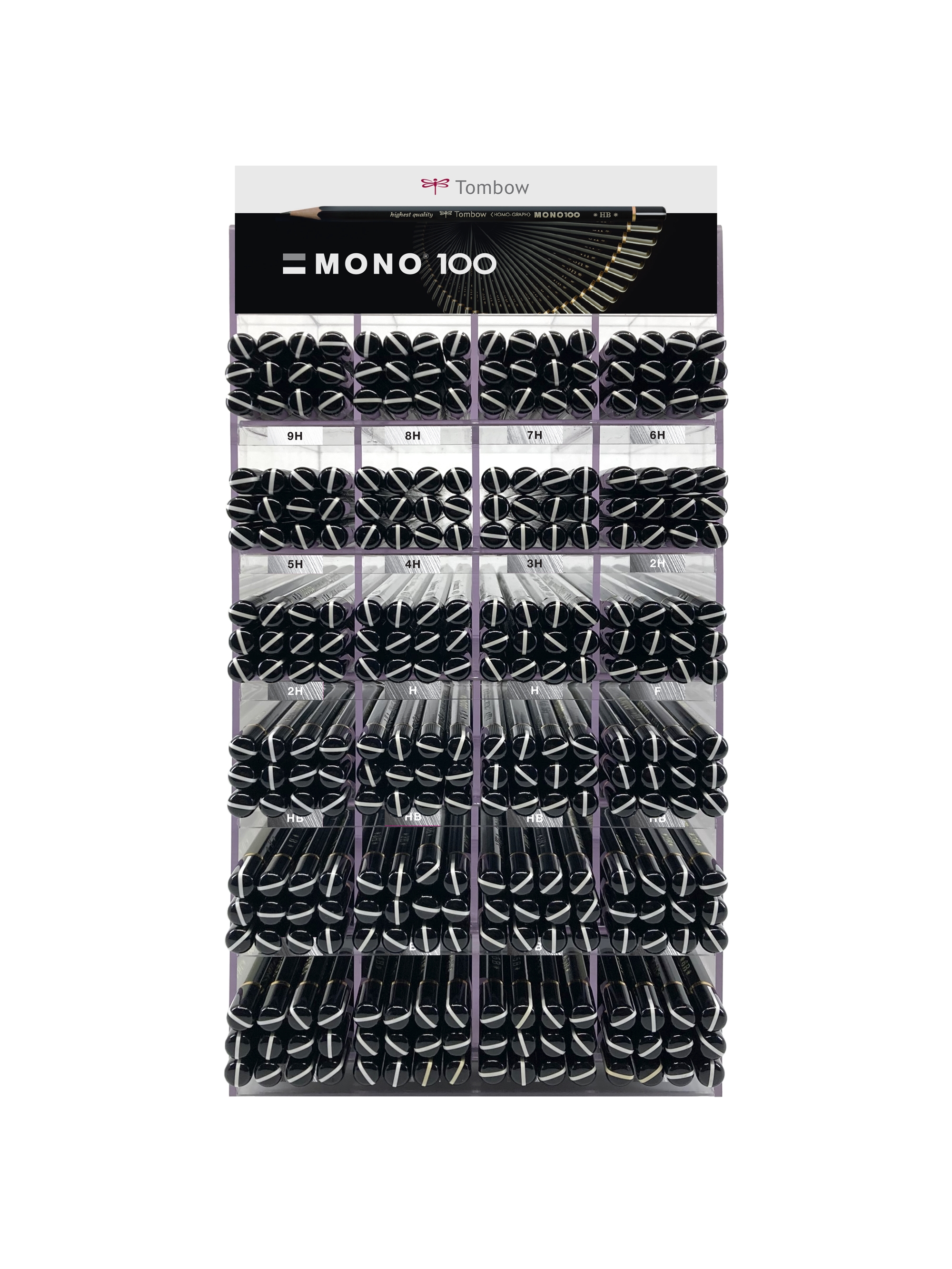 • Mono 100 blyanter. Indhold til Acrylic display bestående af 288 penne. 12 stk. x 9H, 8H, 7H, 6H, 5H, 4H, 3H, F, 3B, 4B, 5B, 6B + 24 stk. x 2H, H, B, 2B, + 48 stk. x HB = 288 penne. Display bestilles på særskilt varenr. (TOM29255). Kvalitetsblyant til tegnere og arkitekter.