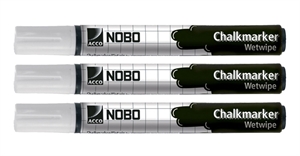 Kridt wet eraser marker til brug på ikke-porøse overflader som glas, hvid farve, pakke med 3. - Wet erase kridtmarker for en dristig hvid kridteffekt - 3 mm spids - Pakke med 3