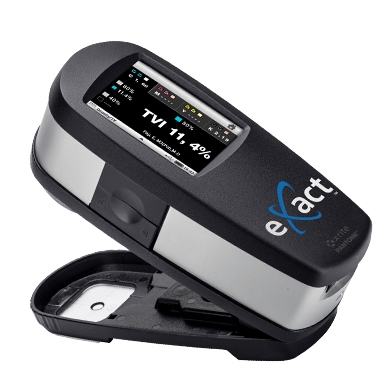 • X-Rite eXact Densitometer er til folk, som kun arbejder i CMYK og ønsker et instrument som giver dig de traditionelle værktøjer til CMYK måling.
